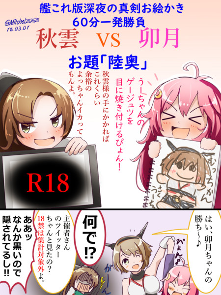 秋雲vsうーちゃん 深夜の真剣お絵かき60分一本勝負 ミッチェル さんのイラスト ニコニコ静画 イラスト